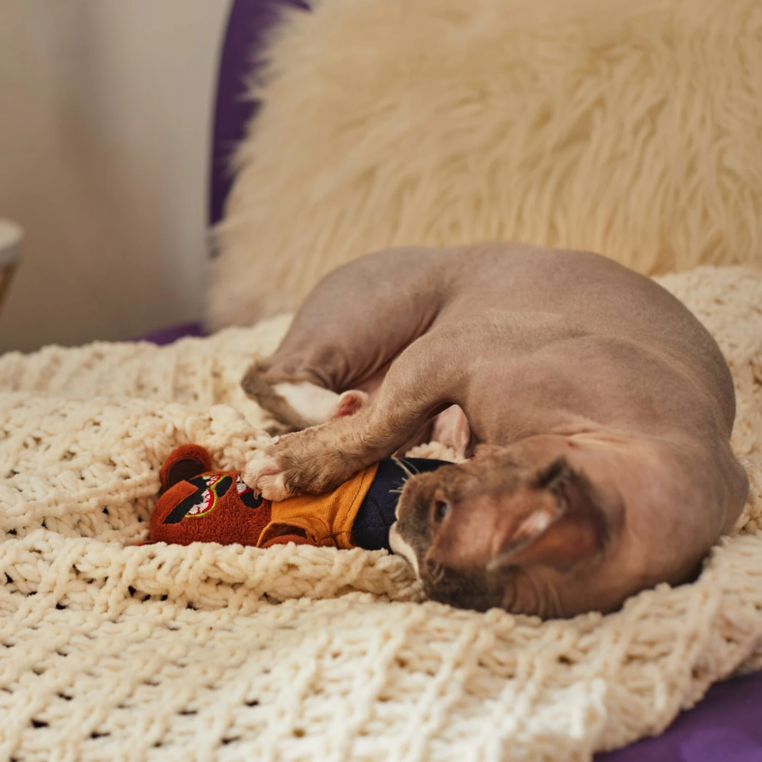 - Soft fabric cover and plush stuffing great for biting, clawing and kicking.
