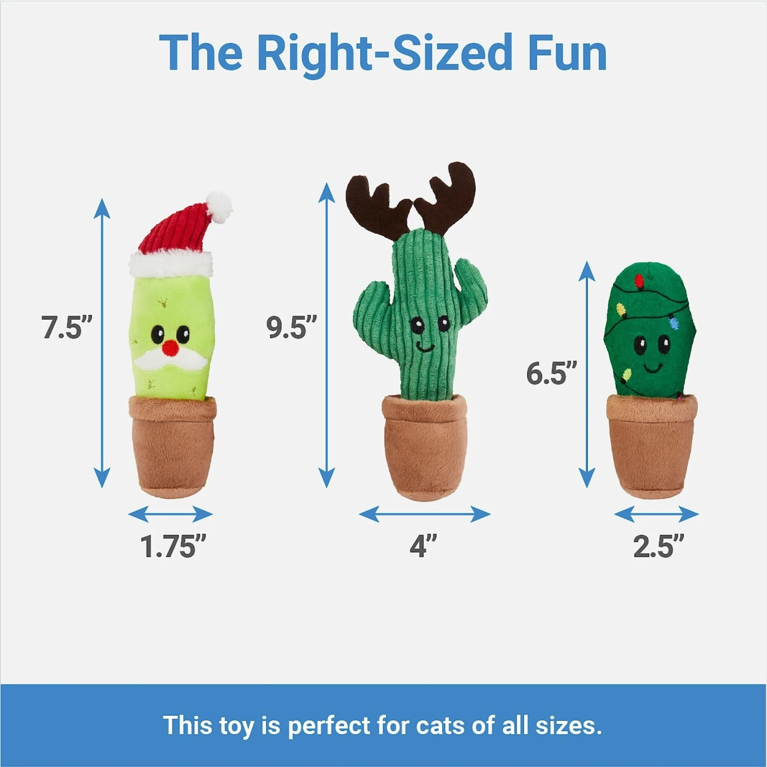 Frisco Holiday Cactus Plush Cat Toy With Catnip, 3 Count