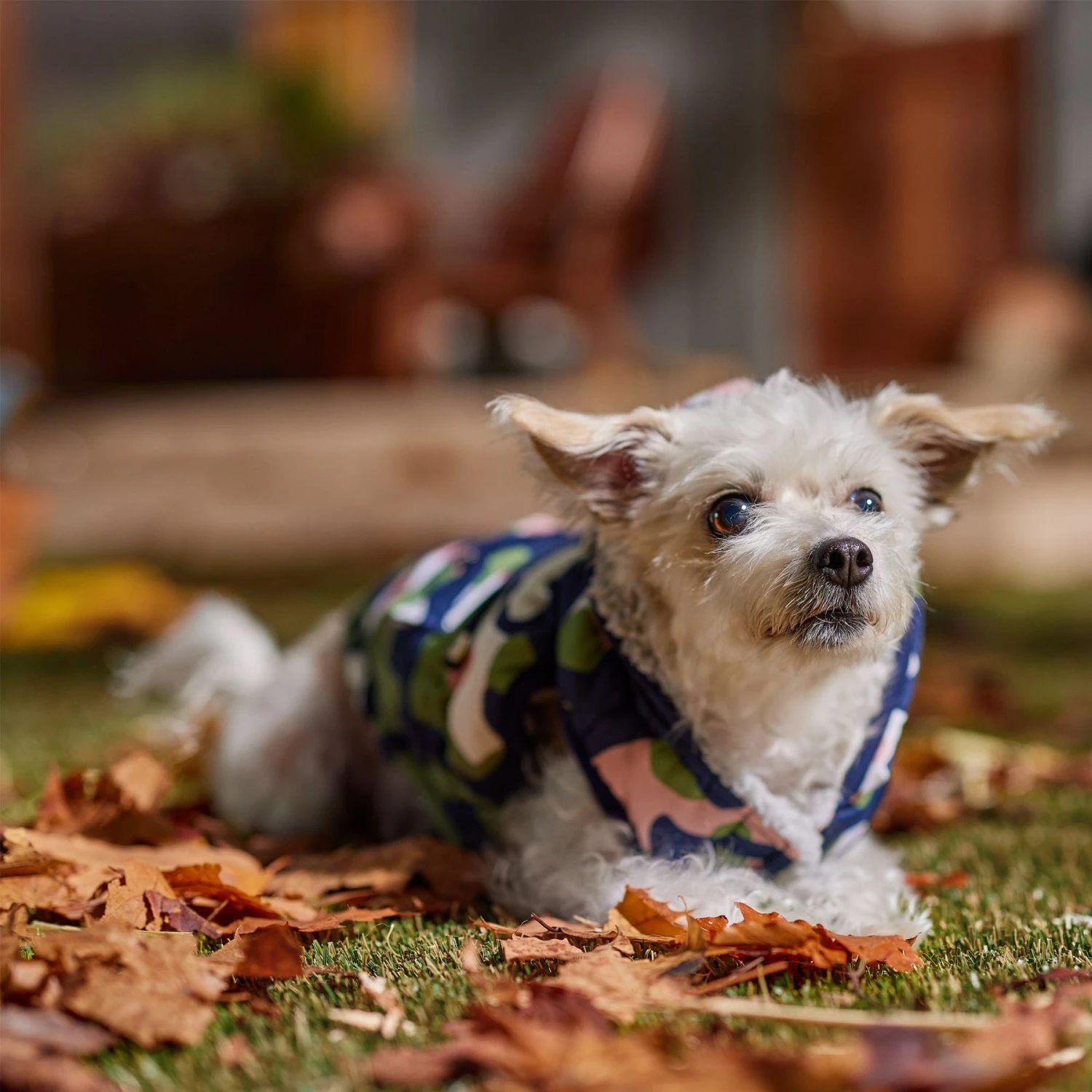 - This camouflage-printed coat features a cozy sherpa lining and an elastic-drawcord toggle with tail-friendly bottom hem for a perfect, pet-approved fit.